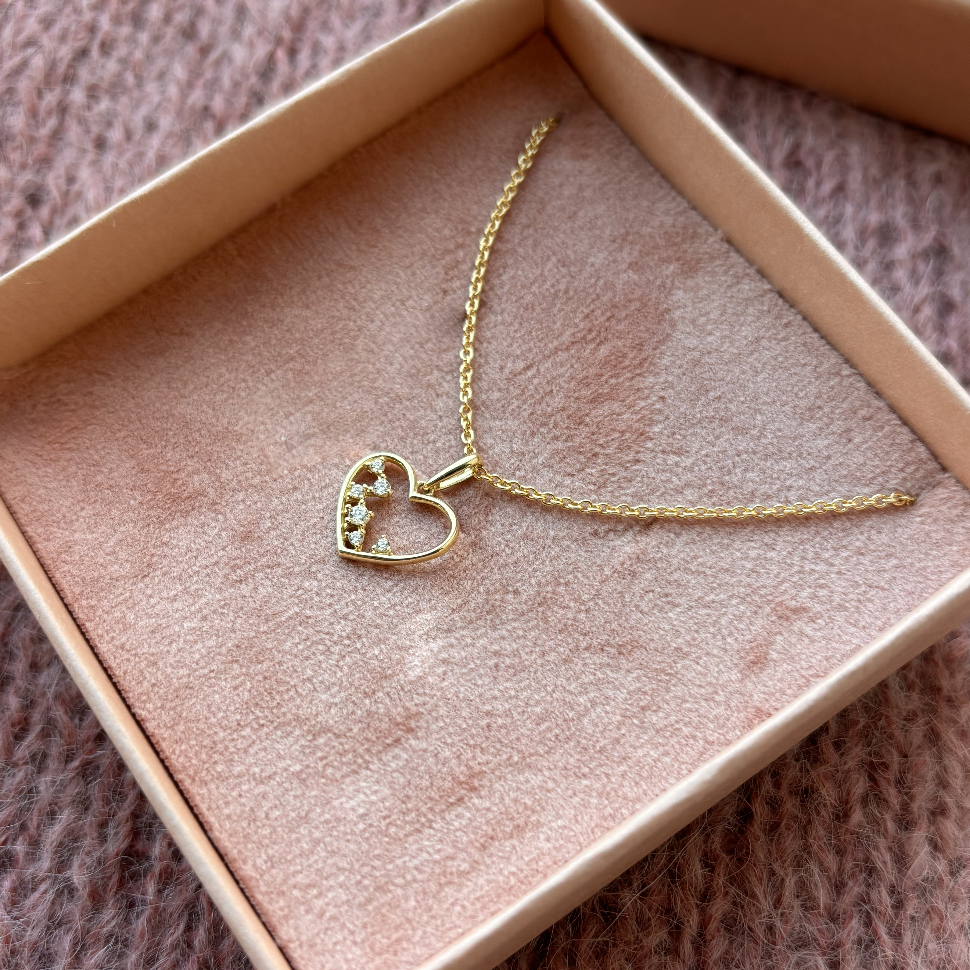 *Vedhæng hjerte cubic zir 8 kt m.sølvkæde