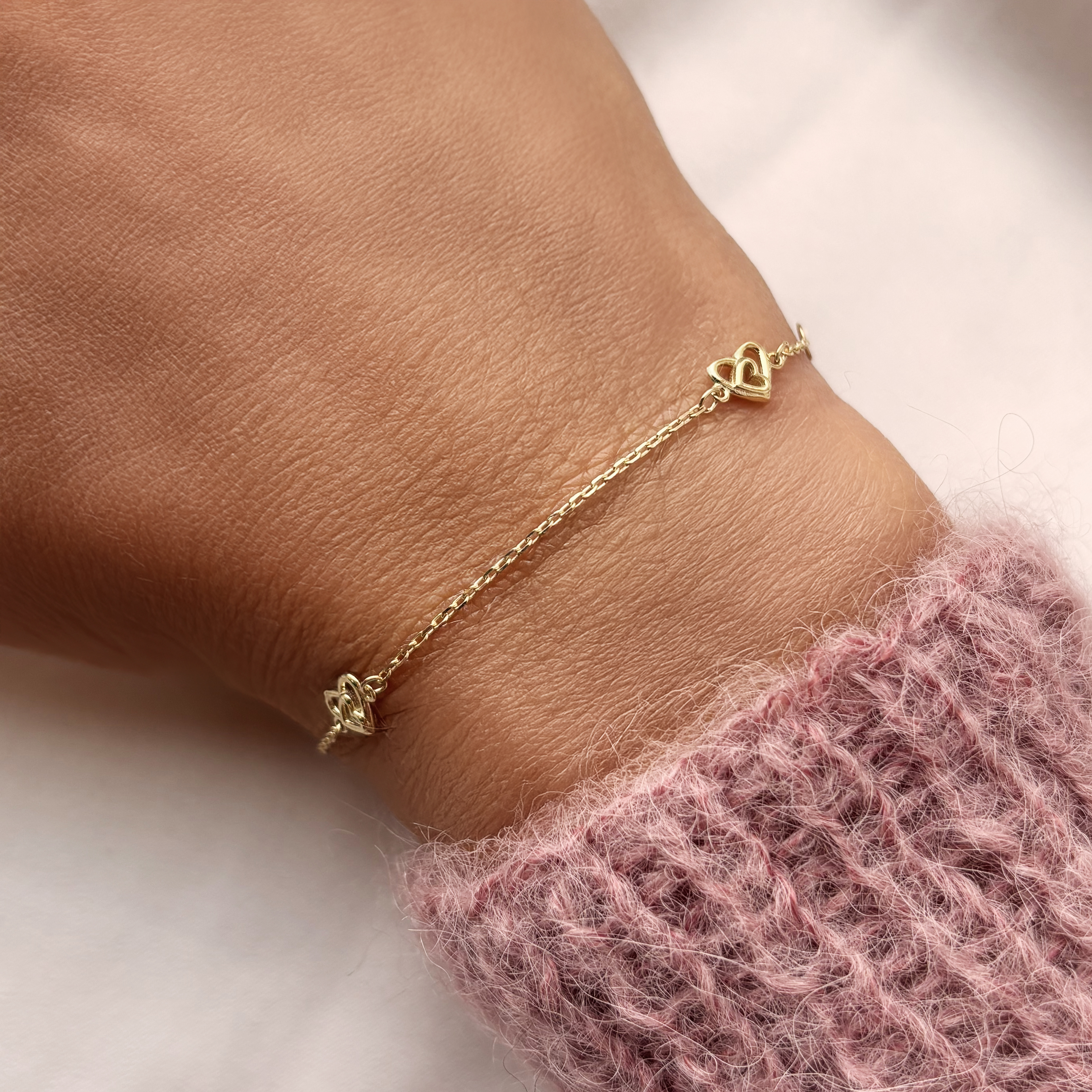 *Børnearmbånd hjerter 14+2cm 8 kt.