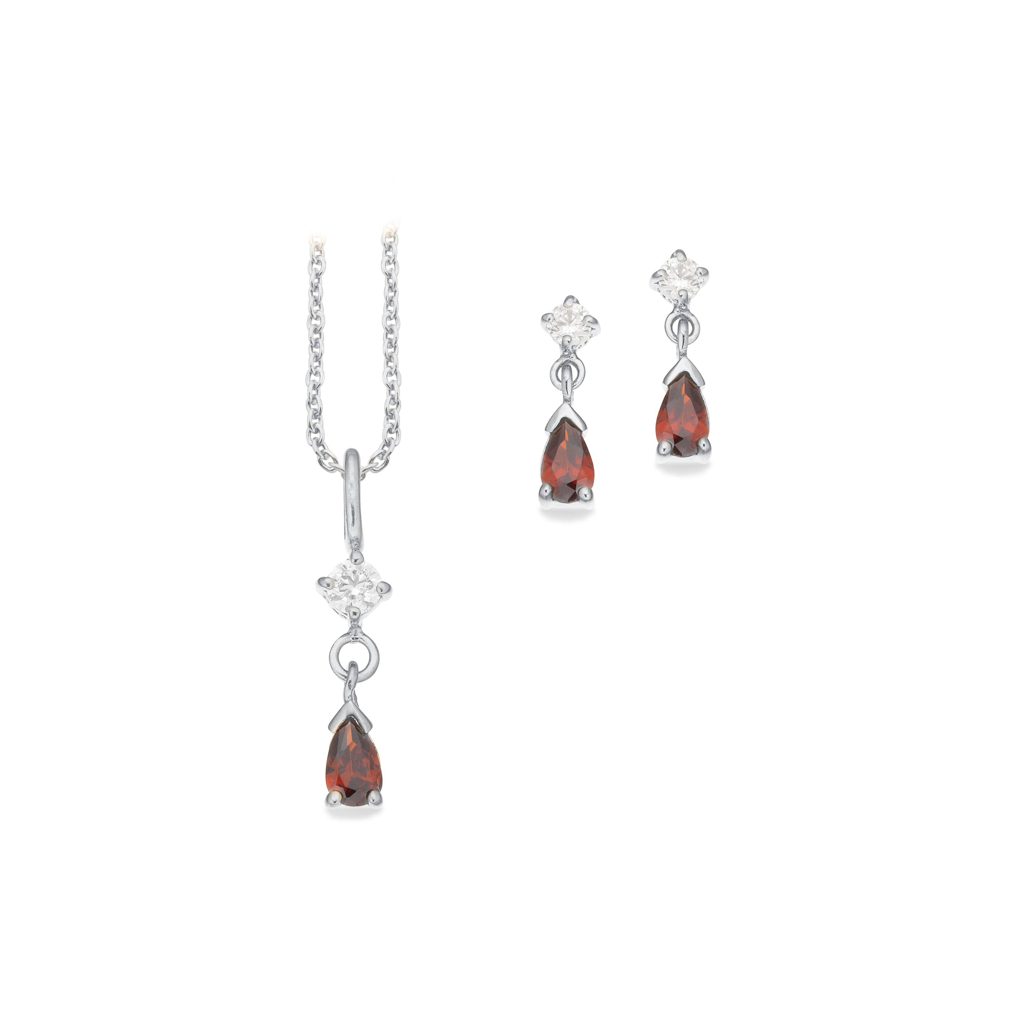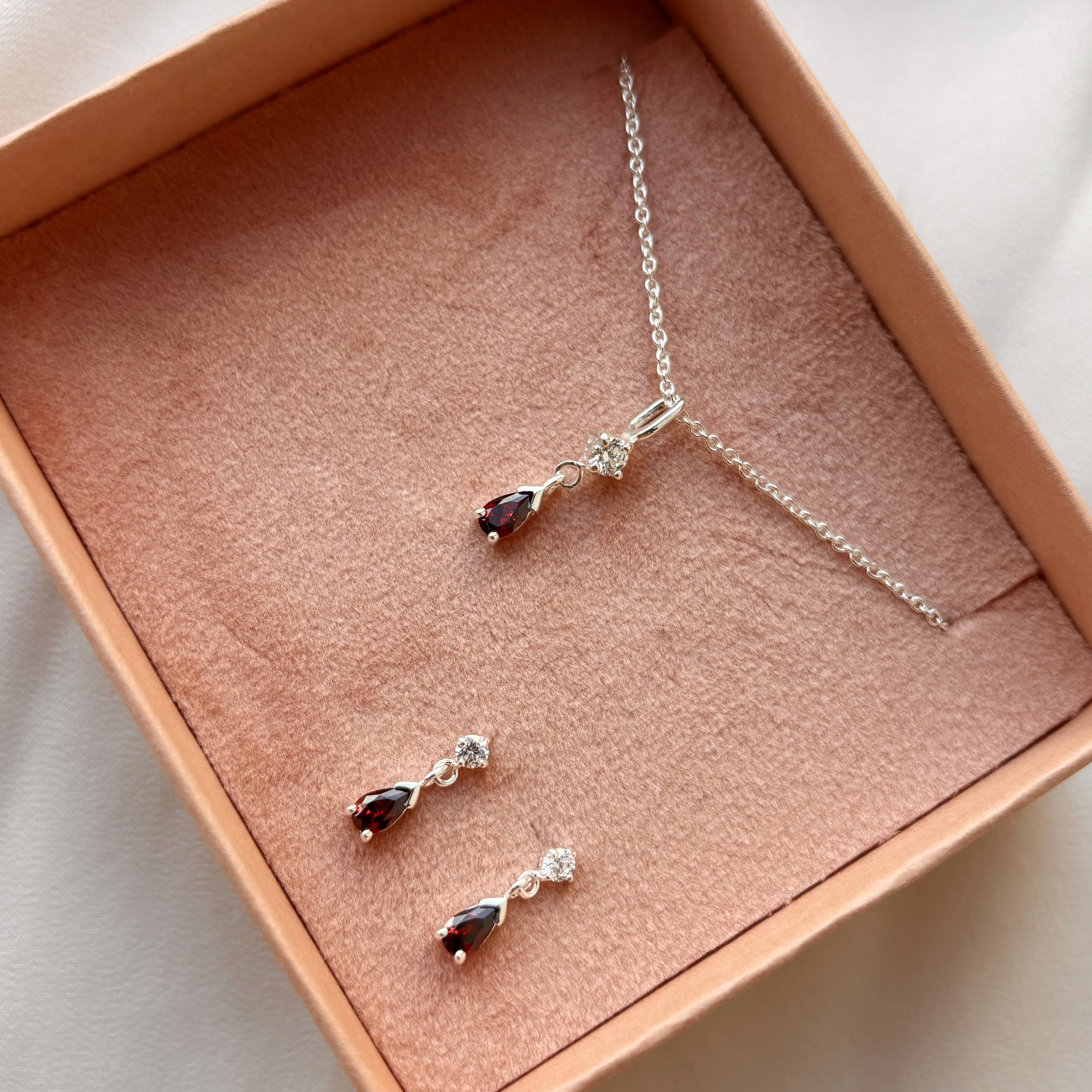 *Pixel smykkesæt dråbe rød cubic zir. sølv
