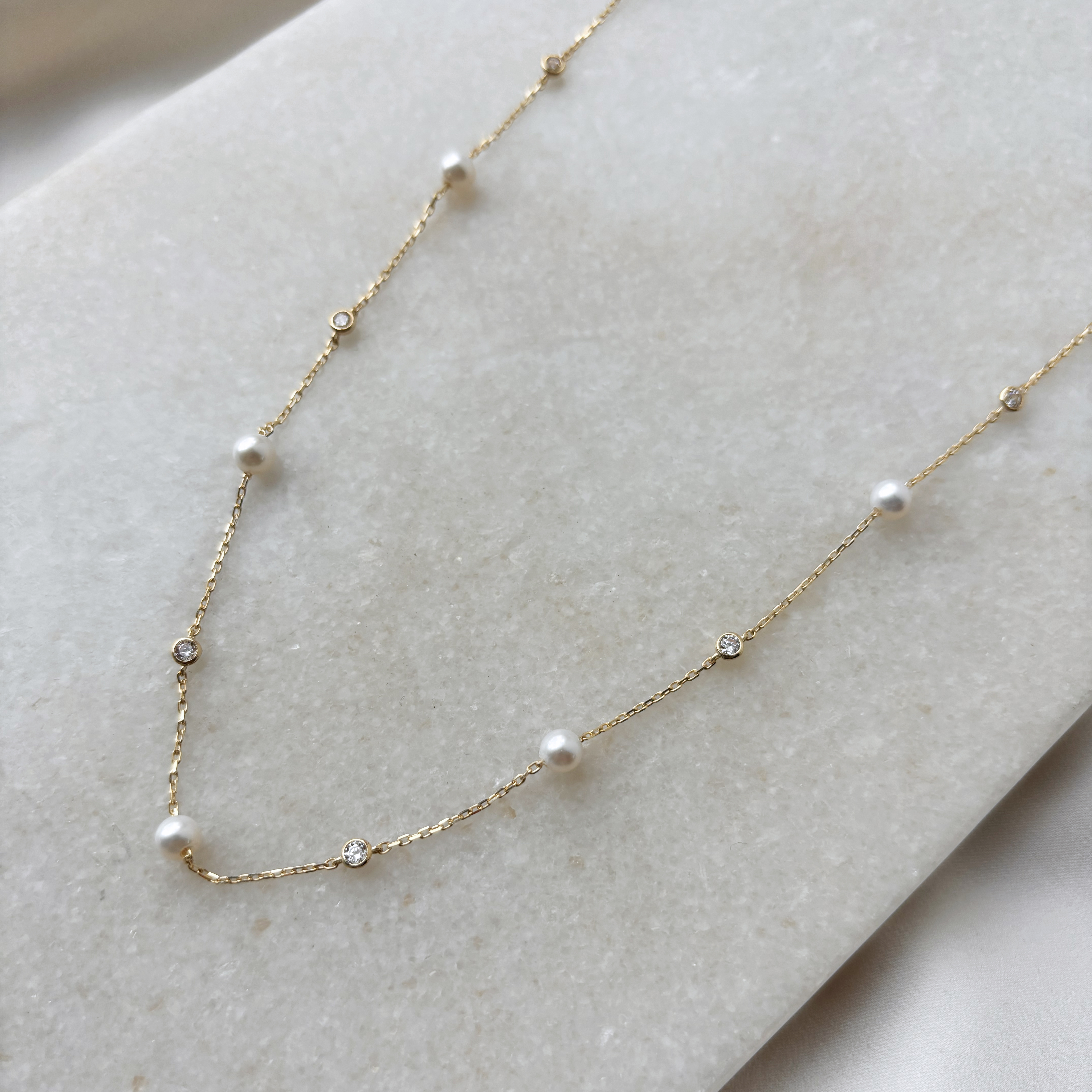*Halskæde fkp./cubic zir. 42+3cm 8 kt.